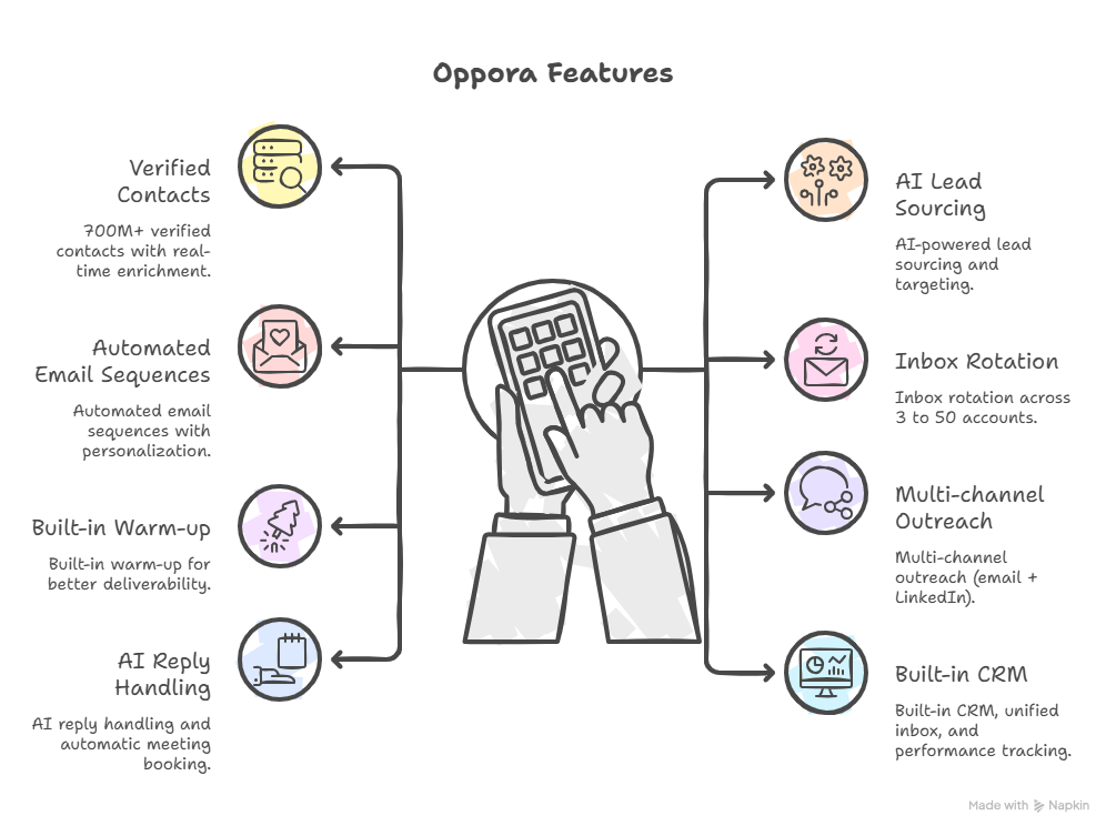 Platforms like Oppora automate lead generation, outreach, follow-ups, and even replies, reducing the need for multiple tools.