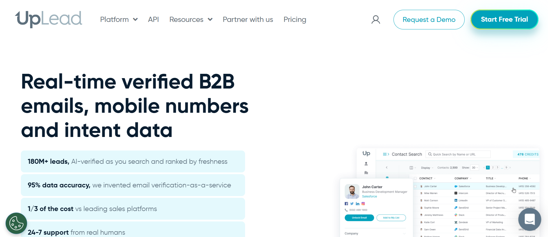 - Data quality: Accurate, verified leads that improve conversion rates