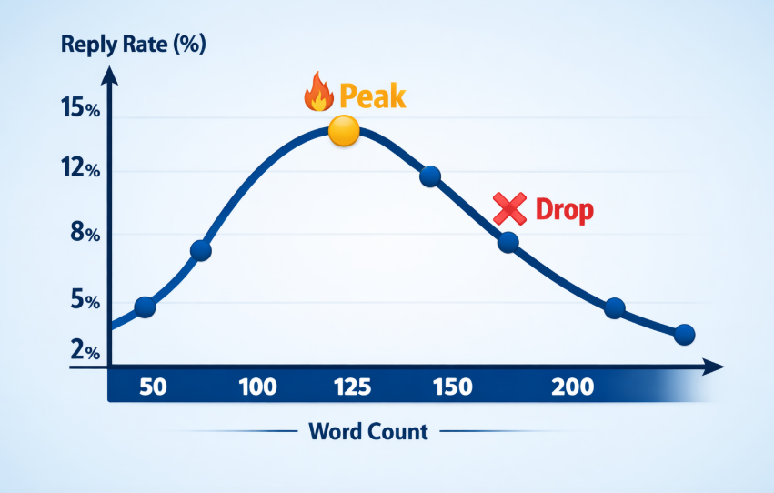 Emails between 50–125 words consistently hit the highest engagement window, while anything longer sees a noticeable drop in response rates.