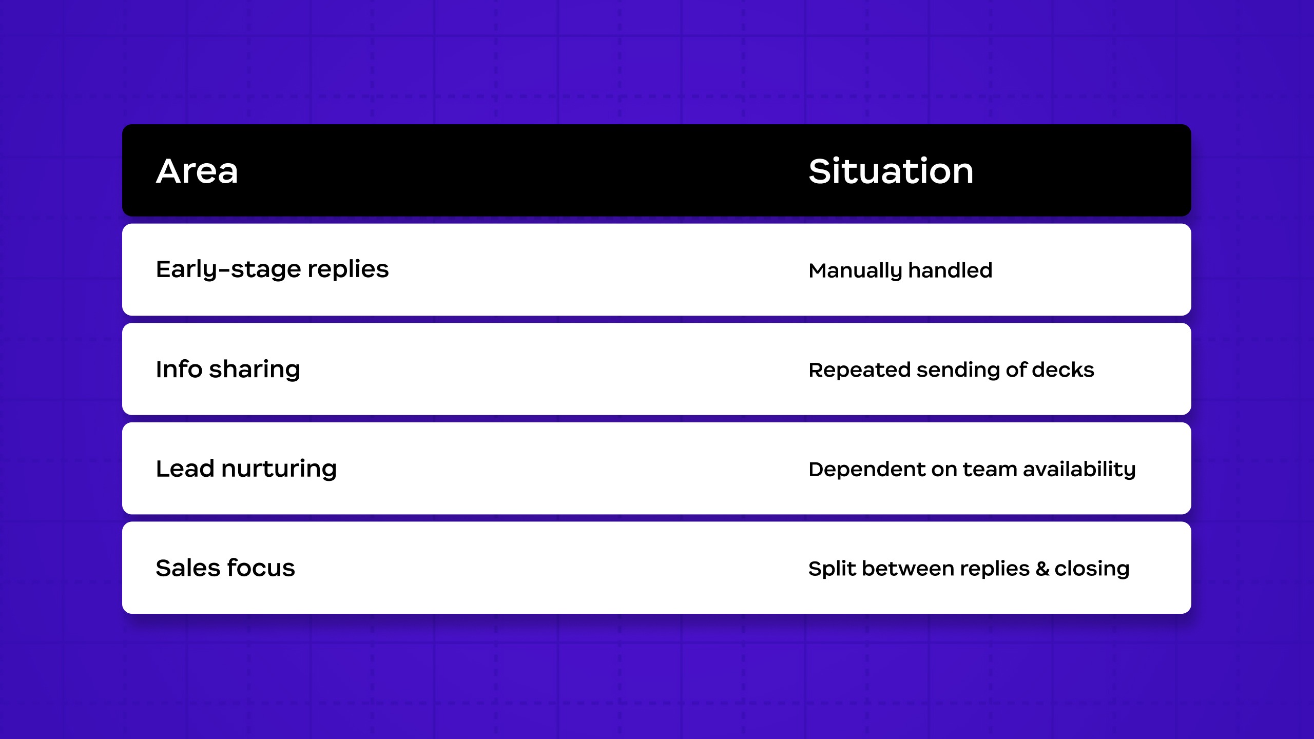 - Manual follow-ups pulling attention away from core sales work