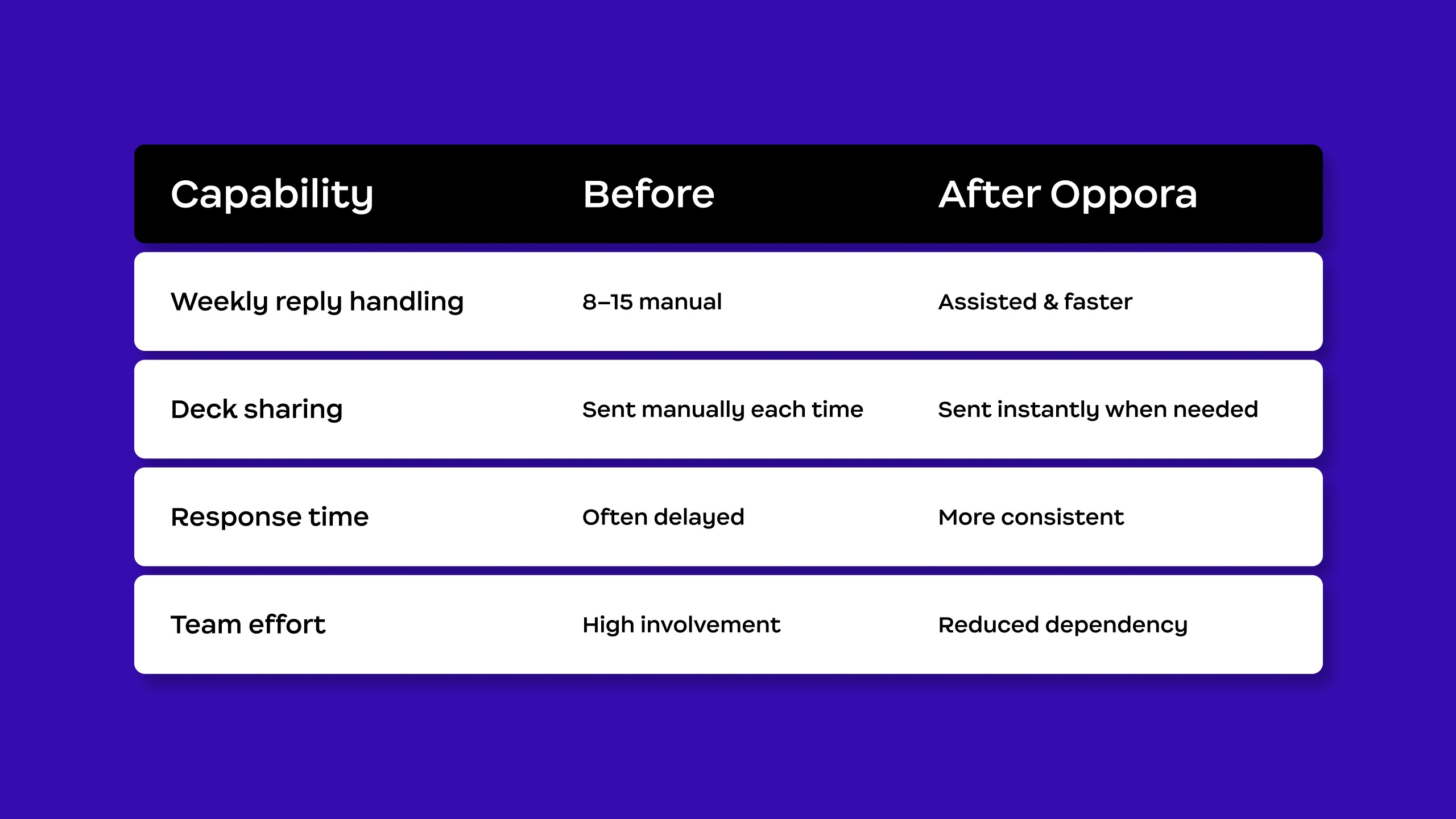 - Time spent sending decks and answering similar questions
